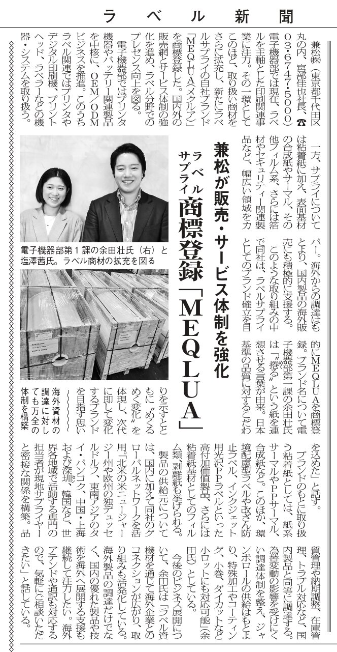 日本国内唯一のラベル関連専門紙、「ラベル新聞」に記事を掲載いただきました。